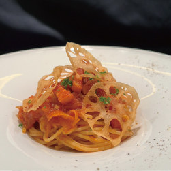 ●スパゲッティ レンコンアマトリチャーナ:1,200 円(税込)